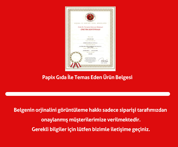 Papix Gıda İle Temas Eden Ürün Belgesi |