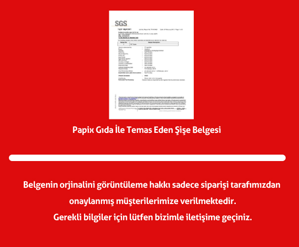 Papix Gıda İle Temas Eden Şişe Belgesi |