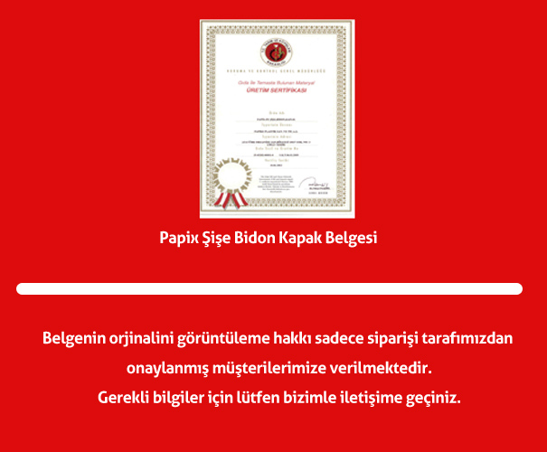 Papix Şişe Bidon Kapak Belgesi |