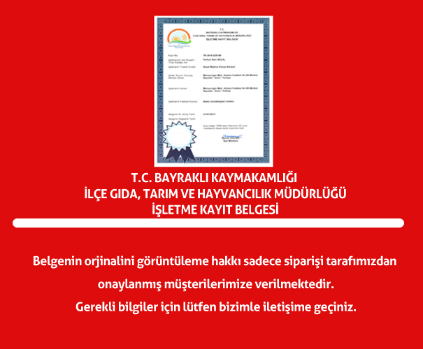 T.C. Bayraklı Kaymakamlığı İlçe Gıda ve Hayvancılık Müdürlüğü İşletme Kayıt Belgesi |