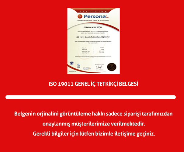 ISO 19011 Genel İç Tetkikçi Belgesi |