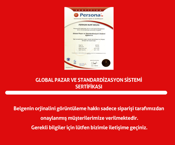 Global Pazar ve Standartisyon Sistemi Sertifikası |