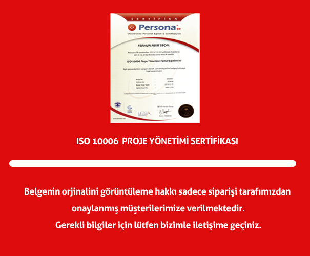 ISO 10006 Proje Yönetimi Sertifikası |