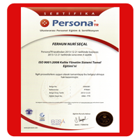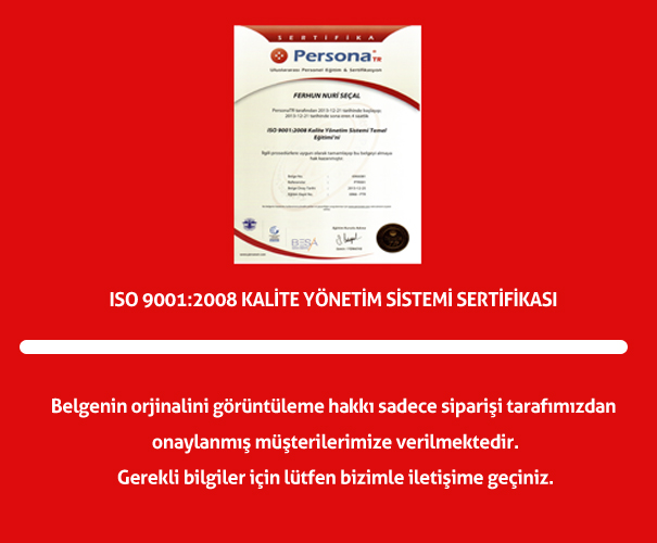 ISO 9001:2008 Kalite Yönetim Sistemi Sertifikası |