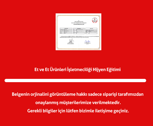 | Et ve Et Ürünleri İşletmeciliği Hijyen Sertifikası |